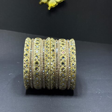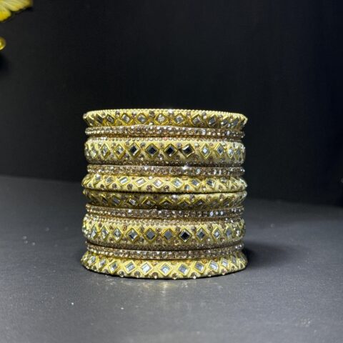Exquisite Gold-Toned Mirror Work Bangle Set Traditional Indian Chuda with Crystal Accents for Bridal & Festive Wear
