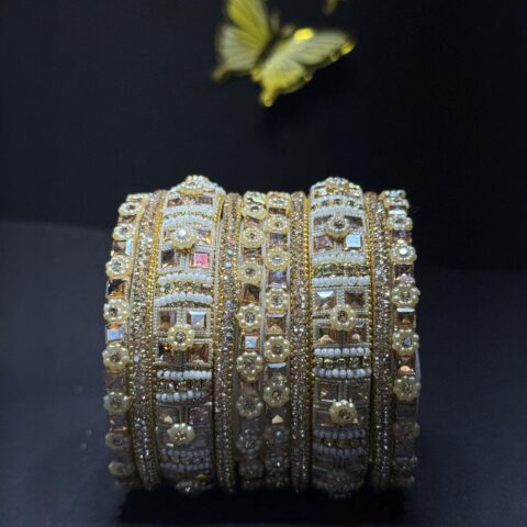 Exquisite Handcrafted Bridal Chura Set – Antique Gold Finish with Pearl Accents, Kundan-Style Stones & Floral Beadwork