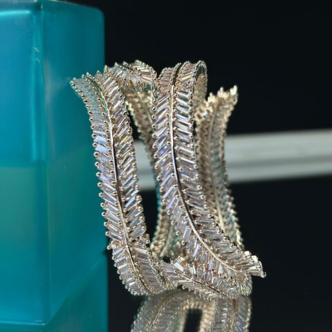 Royal Lattice Handcrafted Designer Bangles – Intricate Cubic Zirconia Embellished Statement Kada Set (Available in Gold, Silver, and Rose Gold Finishes)