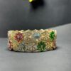 Add a touch of timeless sophistication to your ensemble with these handcrafted white crystal floral bangles. Featuring a dazzling monochromatic palette of clear zirconia crystals set in a high-quality gold-toned base, these broad bangles offer a luxurious “diamond-look” perfect for weddings, receptions, and formal events.